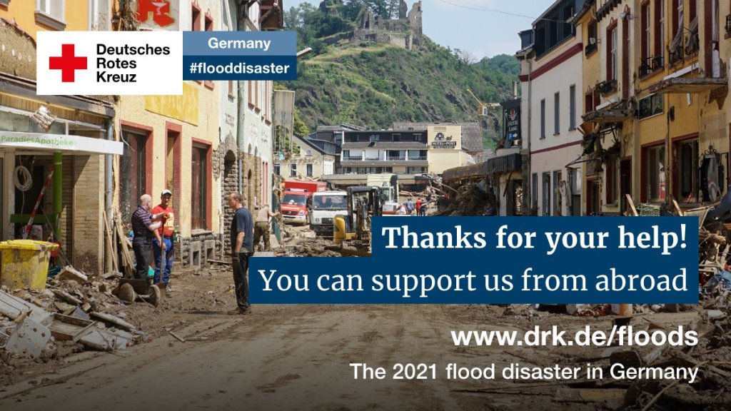 The GRC has stated that it sees no signs of relief for many people in the disaster areas in North Rhine-Westphalia and Rhineland-Palatinate yet. โThe situation is disastrous and remains threatening. It is still a matter of saving lives and providing people with the most necessitiesโ, said DRK President Gerda Hasselfeldt. โMany communities are still hard to access.โ